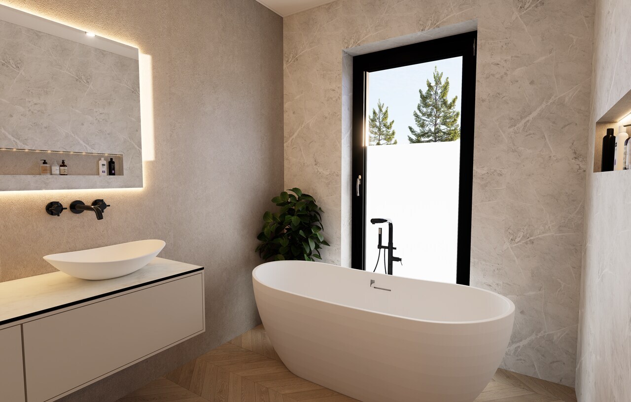 Mówiąc o komforcie, nie sposób pominąć systemu ogrzewania i klimatyzacji. Dom Mobilny Grandes oferuje ogrzewanie podłogowe elektryczne z folią grzewczą na podczerwień o mocy 80 W/m². Sterowanie tym systemem odbywa się poprzez aplikację mobilną, co pozwala na łatwe dostosowanie temperatury w każdym pomieszczeniu za pomocą termostatu. Klimatyzacja z funkcją grzania o mocy 3,2 kW podnosi komfort użytkowania w cieplejsze dni, a sterowanie pilotem i aplikacją mobilną jeszcze bardziej ułatwia życie.