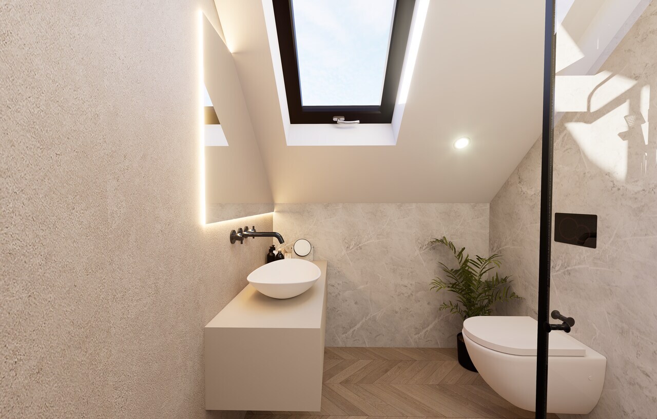 Łazienka w Domu Mobilnym Grandes została starannie zaprojektowana i wyposażona w kwadratowy prysznic 90x90 z armaturą, wiszące WC, a także szafkę z umywalką. Dodatkowo, znajduje się tam szafa pionowa z miejscem na pralkę oraz asortyment łazienkowy, duże lustro LED nad umywalką oraz grzejnik żeberkowy na ręczniki. W salonie natomiast umieszczono sofę z funkcją spania oraz stolik kawowy, co sprawia, że przestrzeń jest jeszcze bardziej przytulna.