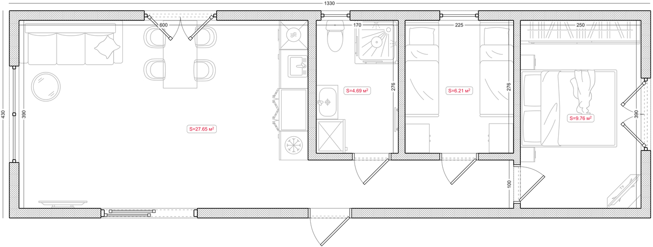 Standard - W pełni wykończony dom, w którym zastosowano eleganckie panele ścienne i sufitowe, stylową podłogę oraz nowoczesne oświetlenie. Dodatkowo, obiekt wyposażony jest w klimatyzację oraz kompletną łazienkę, co sprawia, że jest gotowy do zamieszkania po wstawieniu mebli.